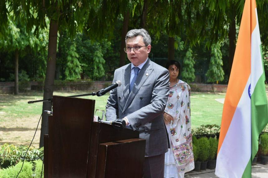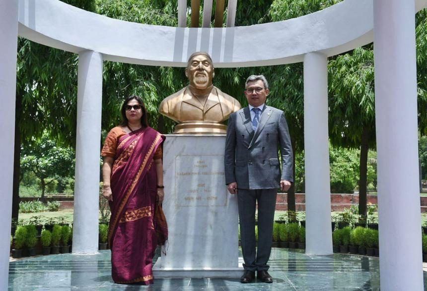 Нью-Дели қаласында Абай бюстінің ашылуына арналған салтанатты іс-шара Қазақстан Республикасы мен Үндістан Республикасы арасындағы сауда-экономикалық, ғылыми-техникалық, өнеркәсіптік және мәдени ынтымақтастық жөніндегі Үкіметаралық комиссияның 14-отырысына қатысу үшін Қазақстан Республикасы делегациясының Үндістанға сапары шеңберінде өтті.