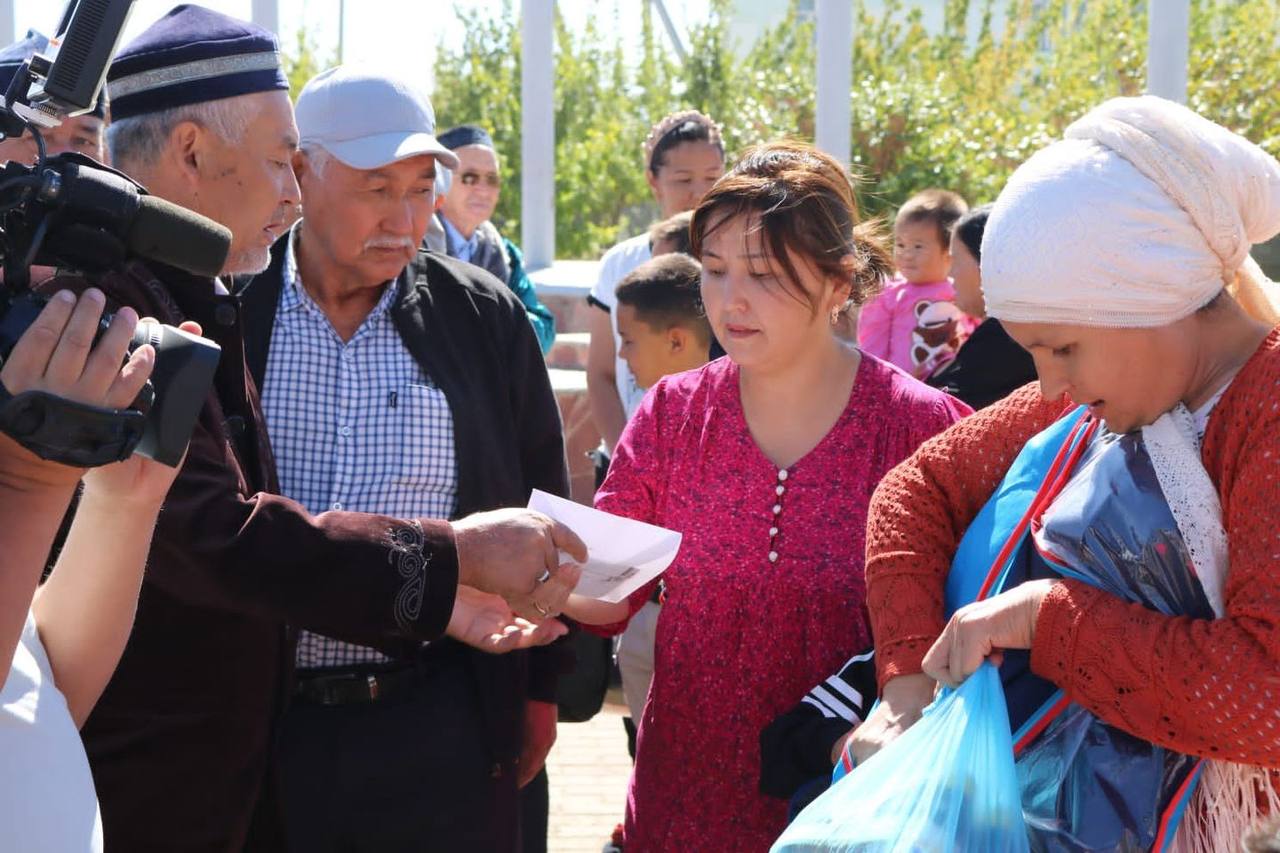 Қаратау ауданының әкімі Рақымберді Мүлкеманов іс-шараға қатысып, демеушілік еткен азаматтарға алғыс айтты. Бұған дейін қайырымдылық акциясы «Тассай», «Асар» елді мекендерінде өткен болатын. Ауданда жалпы 2000 мыңдай мұқтаж отбасы бар.